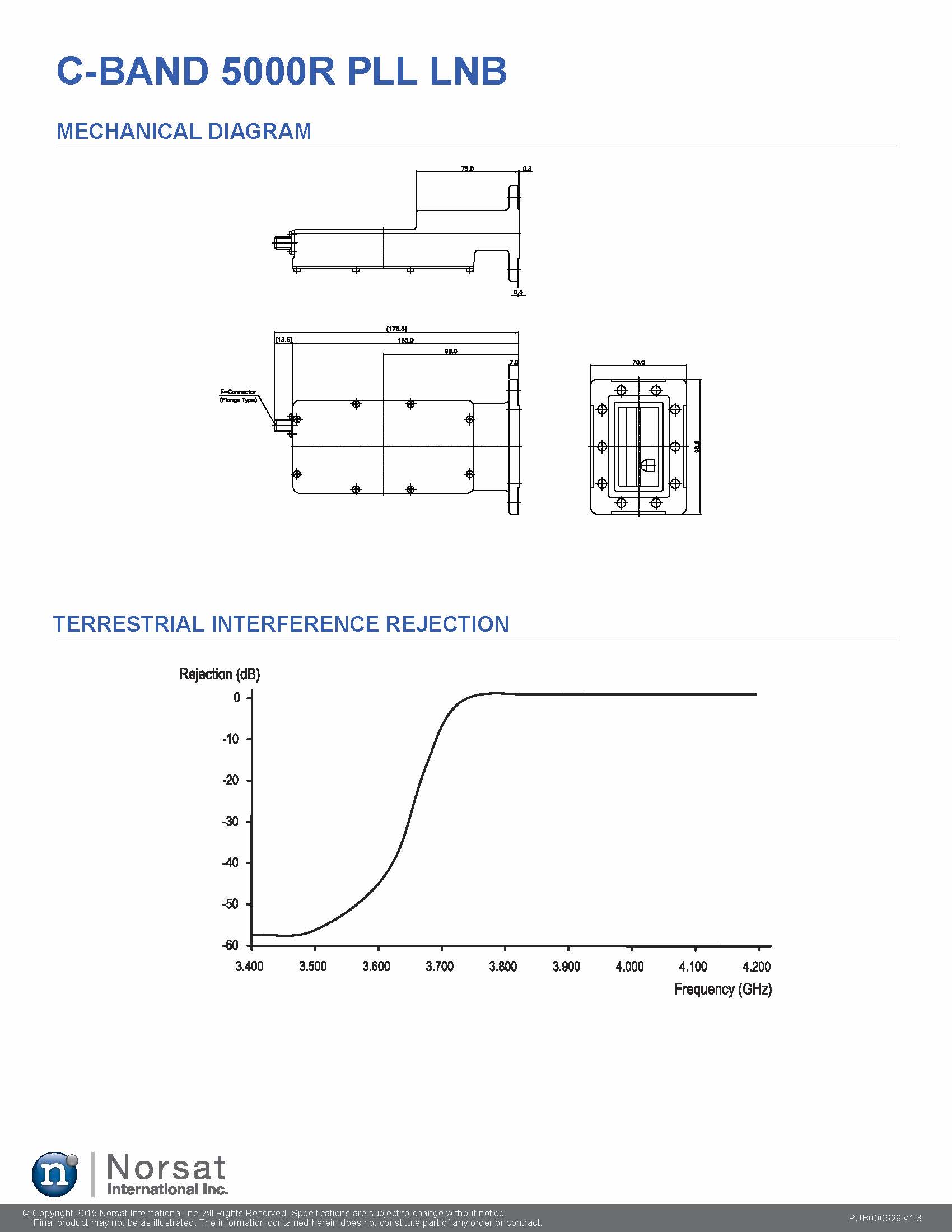 C Band PLL Model 5100R. Avoid Terrestrial Interference Rejection Noise Temperature 15K, Typycal 30K. Freq 3.7~4.20GHz.