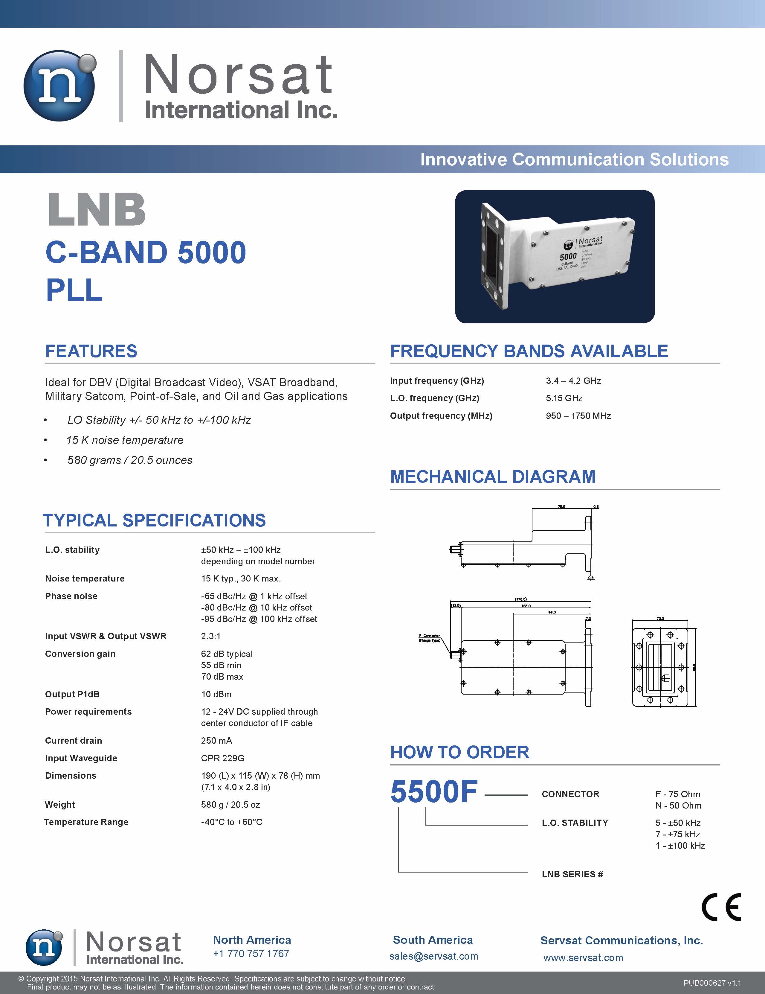 C Band PLL Model 5500, L.O Stability +/-50kHz, Noise Temperature 15K, Freq. 3.4~4.2GHz
