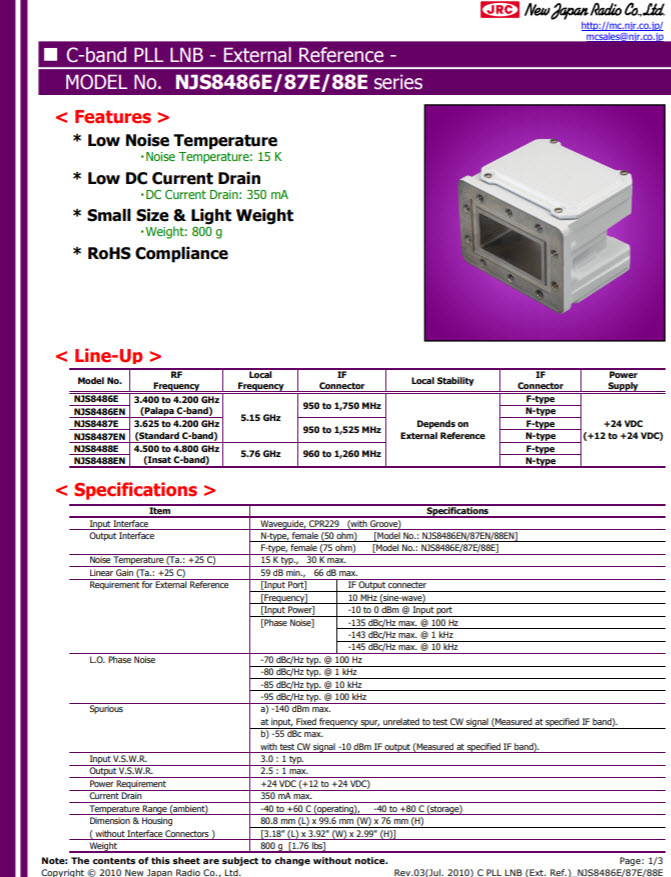 C Band External Reference. Model NJS8486E. Low Noise. Freq. 3.40 to 4.20 GHz