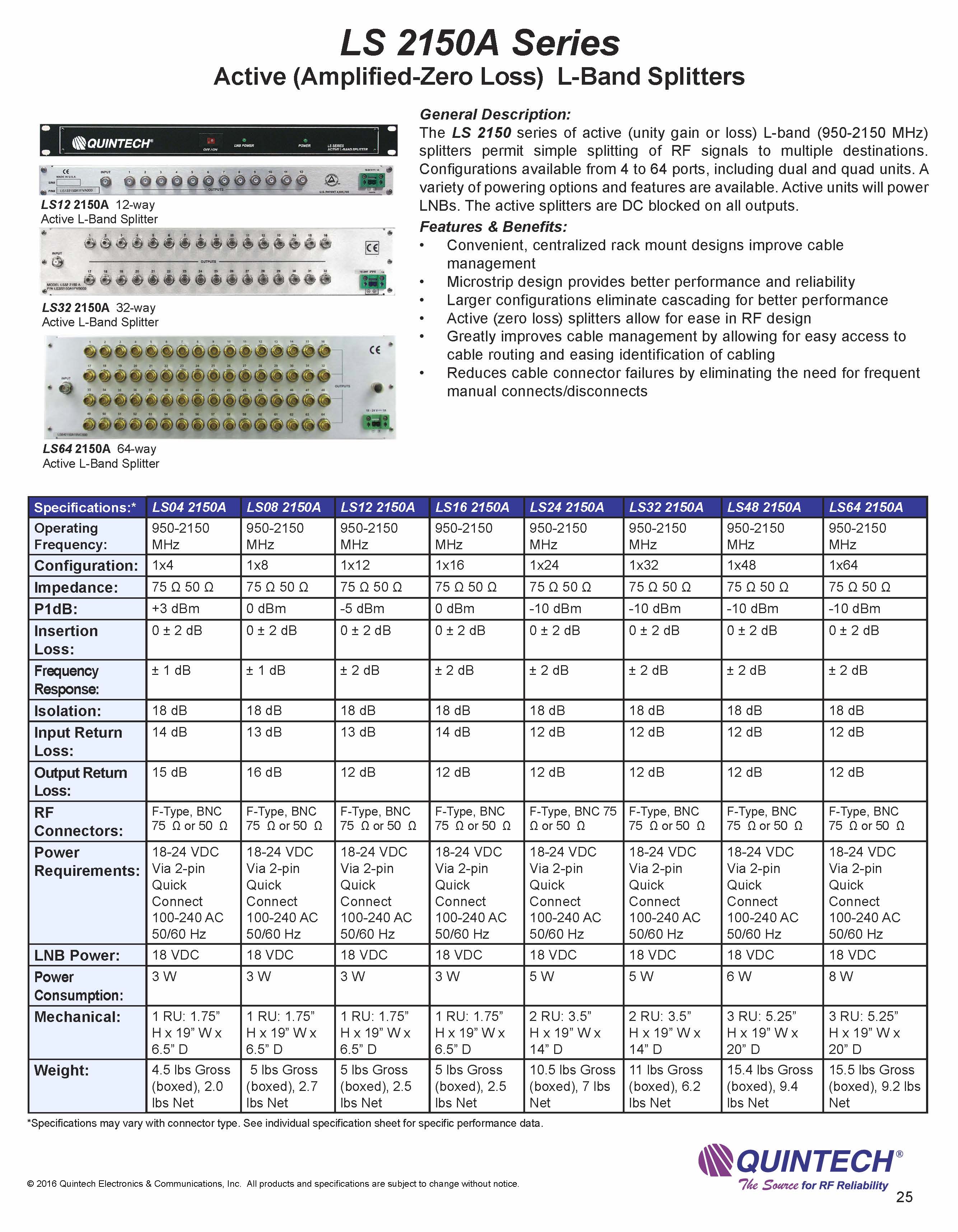 Quintech Active Splitters L-Band