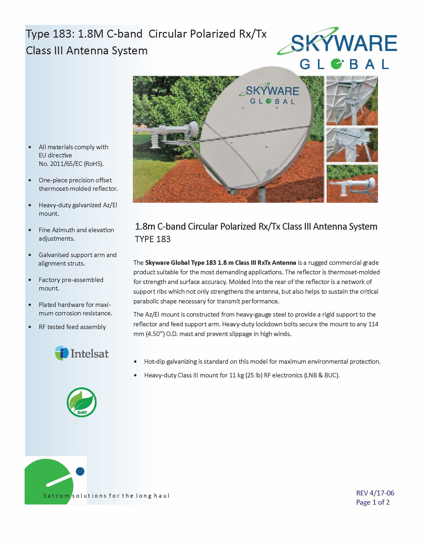 VSAT Antenna C-Band Circular Pol Type 183 Class III