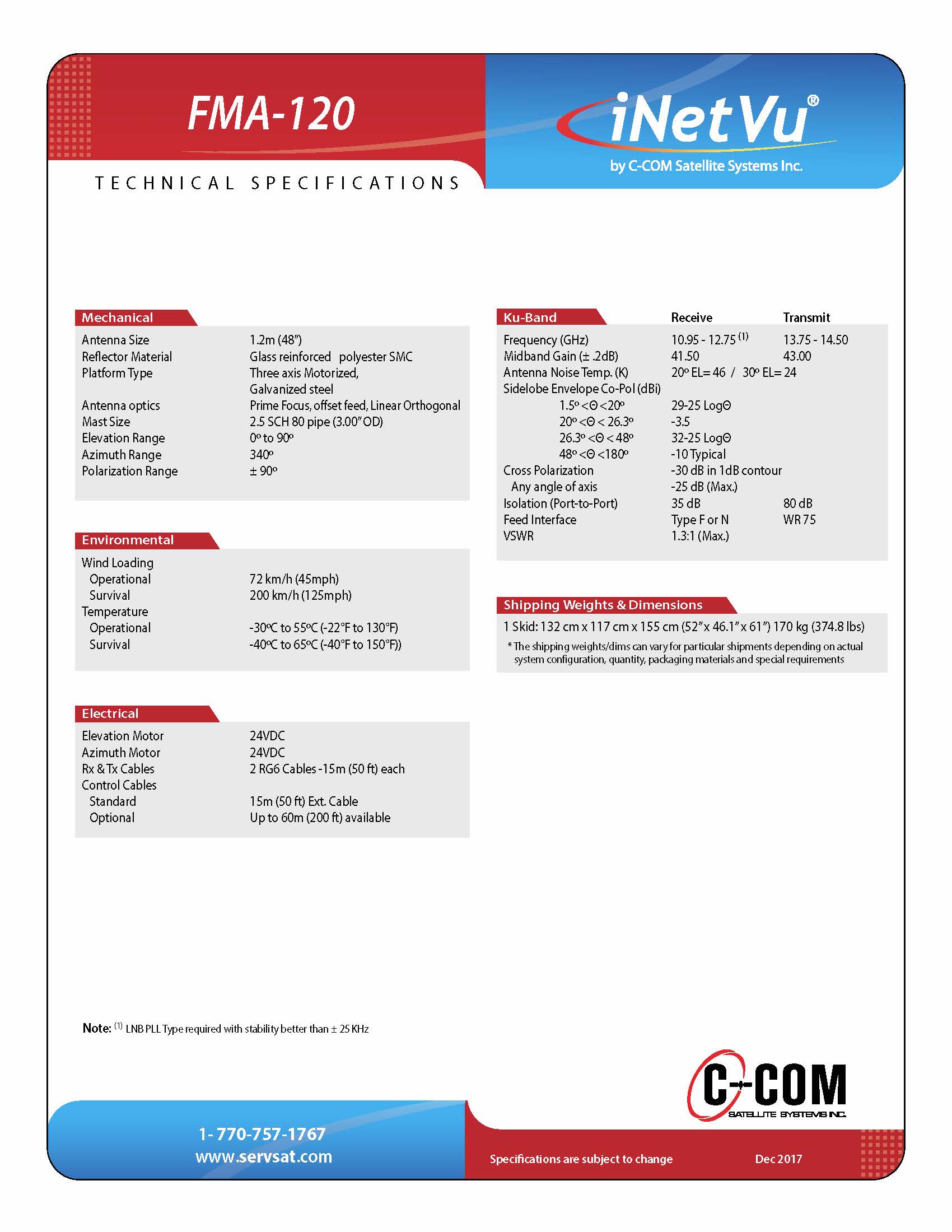 Motorized Antenna Fixed instalation TxRx Ku Band FMA 1.2m.