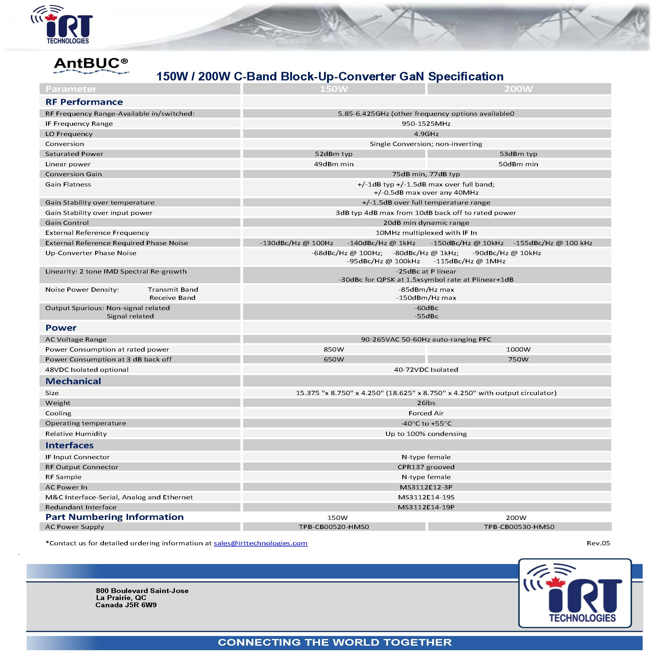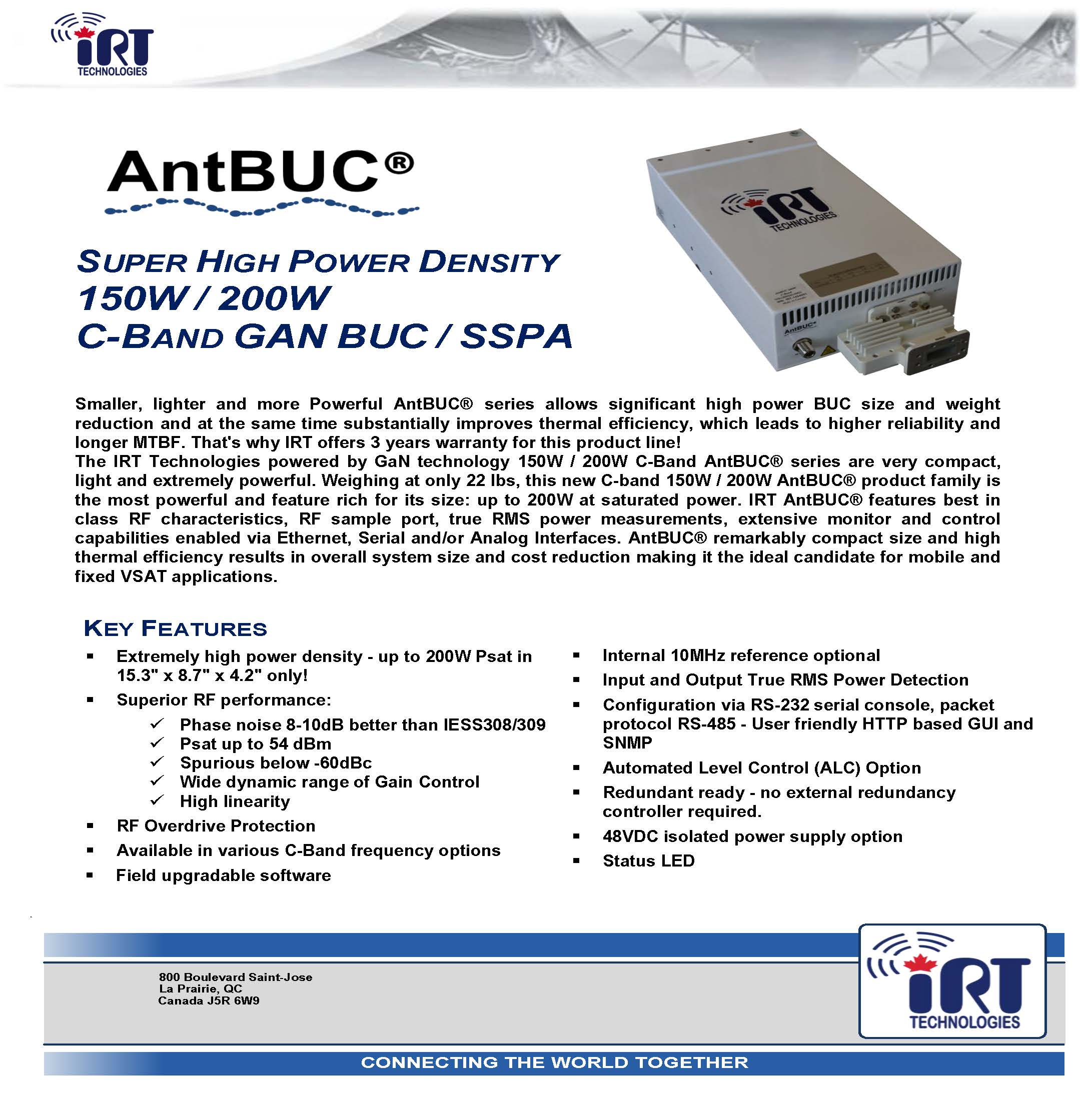 - Extremely high power density - up to 200W Psat in 15.3" x 8.7" x 4.2" only!