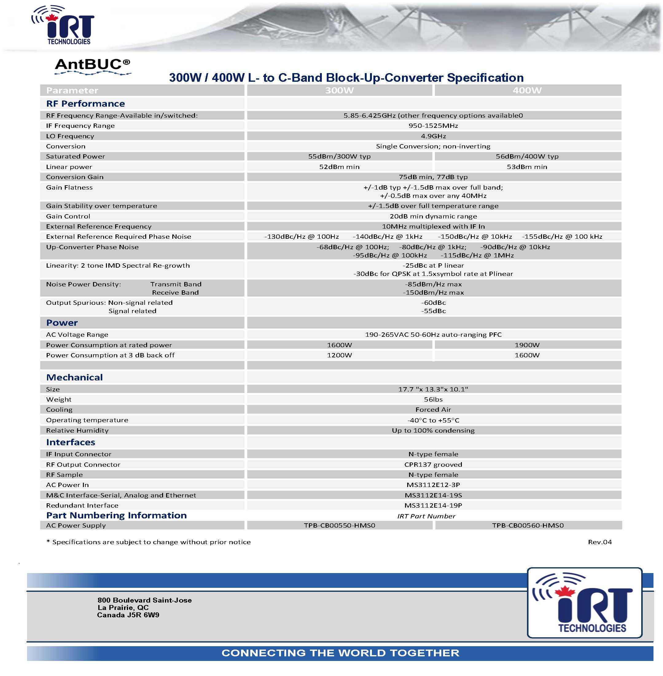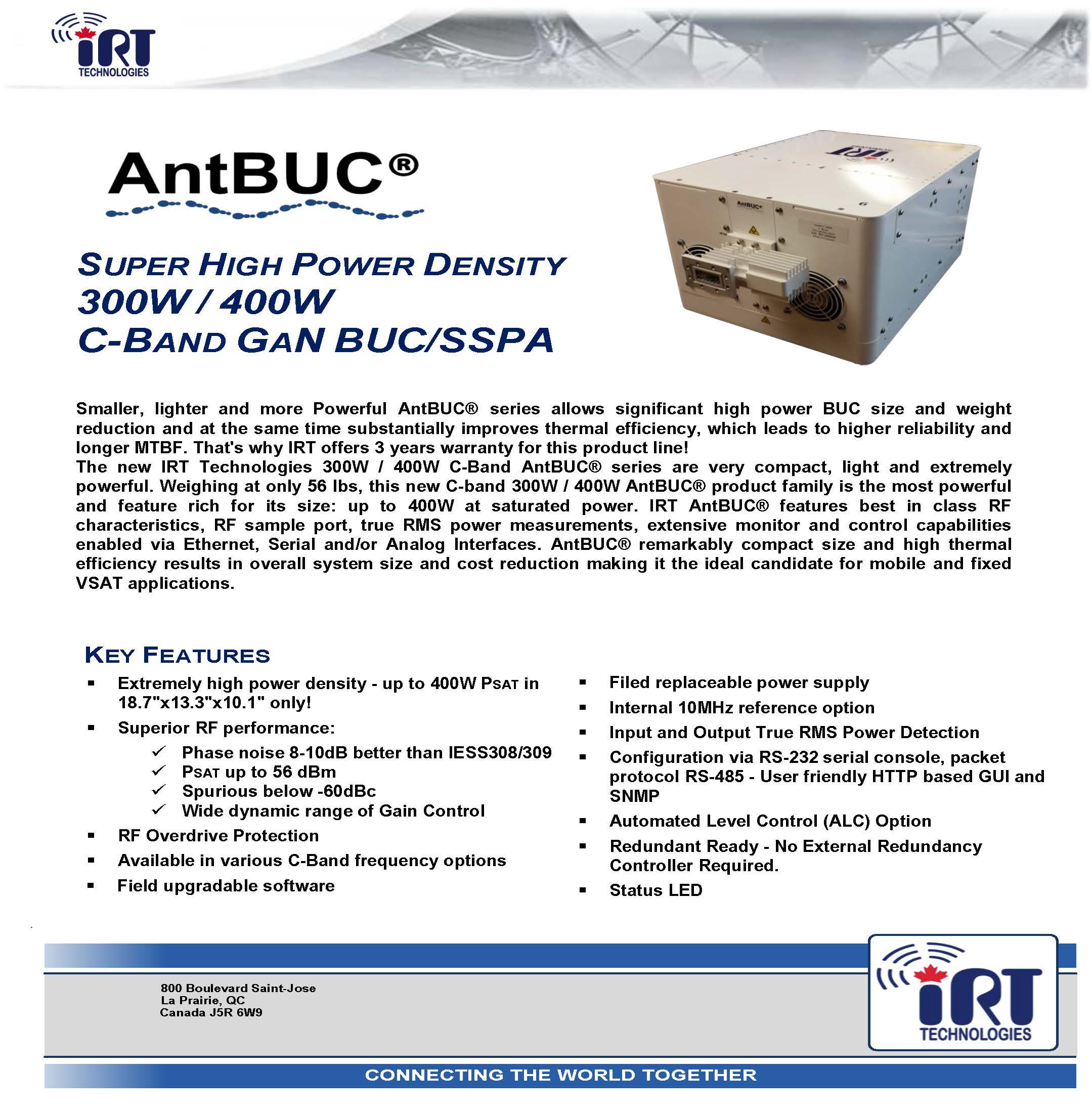 - Extremely high power density - up to 400W Psat in 18.7"x13.3"x10.1" only!